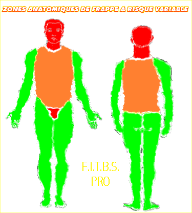 Les zones du cœur, du plexus solaire et de la colonne vertébrale, n'ont pas la même classification que celle des Américains qui les placent en zone rouge. Nous les classons en zone orange car les frappes modérées dans ces régions au point d'impact sont limitées: